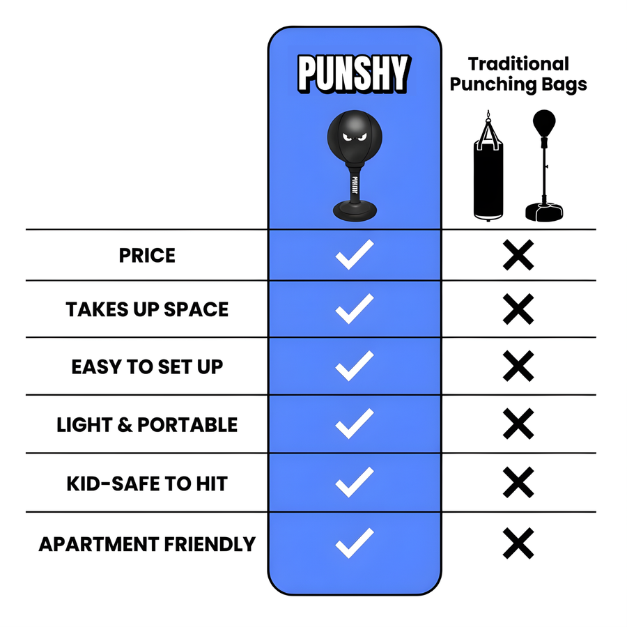 The PUNSHY™ Hit Ball uses tough, reinforced materials that don’t easily crack, deflate or fall apart, even with daily punches.